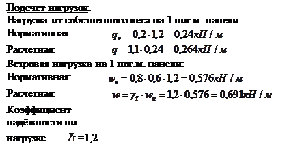 что нагрузки от собственного веса и ветрового давления изгибают панель в разных плоскостях. Поэтому наибольшее нормативное напряжение в обшивке в этом случае надо определять с учетом косого изгиба, суммируя напряжения, полученные для каждой плоскости в отдельности.