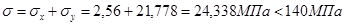 Нормальные напряжения в обшивке от ветровой нагрузки: