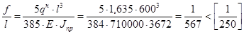 где 1/250 – предельный прогиб в плитах покрытия, согласно табл. 16 [1]. Условие по прогибам выполняется.