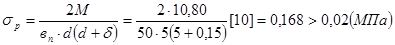 где Rср - расчётное сопротивление срезу (сдвигу) пенопласта марки ФРП-1, принимаемое по Приложениям 8 [7], I.9 [3]; вск = 2 . 3 = 6 см – общая ширина полок двух уголков.