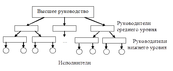 - иерархичность уровней управления, при котором каждый нижестоящий уровень контролируется вышестоящим и подчиняется ему;