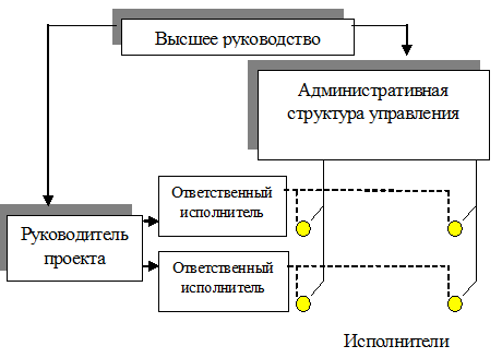 Достоинствами такой структуры являются достаточная гибкость, ориентация на рынок. К недостаткам можно отнести возможность двойного подчинения отдельных исполнителей руководителю проекта и административного подразделения.