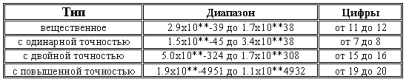Вещественные типы различаются диапазоном и точностью связанных с ними значений.