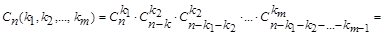 способами, затем из n - k 1 оставшиеся мест выбрать k 2 мест для элемента s 2, что можно сделать