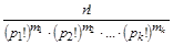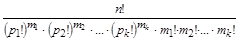 Найти число способов размещения n различных шаров по m урнам так, чтобы m1 урн содержали по p1 шаров, m2 – по p2 и т.д., mk урн по pk шаров (m = m1+ m2+...+ mk, n = m1p1+ m2p2+...+ mkpk), если урны содержащие одинаковое число шаров неразличимы. (Ответ: ).