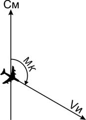 Другим навигационным элементом движения, связанным с этим вектором скорости, является угол, характеризующий его направление относительно меридиана. У самолетов истинная скорость направлена туда же, куда направлен вектор тяги двигателей (ведь именно из-за этой тяги самолет движется), то есть примерно по направлению продольной оси ВС.