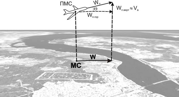 Путевая скорость W (ground speed, GS) − это скорость перемещения МС по земной поверхности.