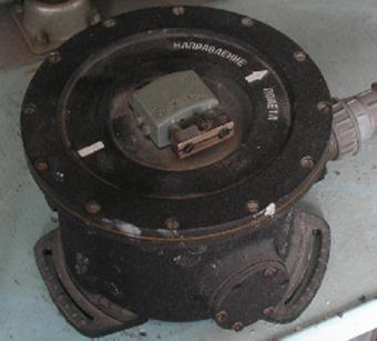 ИД имеет круглый корпус (рис.5.43), внутри которого находятся три расположенных в горизонтальной плоскости и соединенных в форме треугольника стержня, изготовленных из пермалоя (сплава железа и никеля). Все три стержня имеют две общие обмотки. На одну из них (намагничивающую) подается переменное напряжение, а с другой (сигнальной) напряжение снимается. В зависимости от того, как ориентирован ИД относительно магнитного меридиана (силовых линий магнитного поля Земли), с сигнальной обмотки снимается разная величина напряжения (ЭДС).