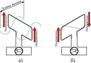 Если же радиостанция располагается в направлении, составляющем некоторый острый угол, к плоскости рамки, то радиоволна сначала достигнет одной из вертикальных сторон, и только затем другой (см. рис. 3.5, б).