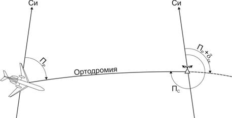 А если для расчета пеленга использован не магнитный, а ортодромический курс? Очевидно, что ортодромический пеленг радиостанции