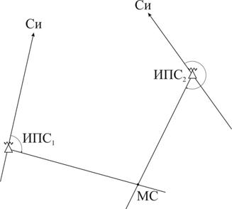 Рис. 3.40. Определение МС по двум радиостанциям