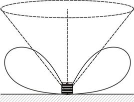 Это означает, что в области пространства, расположенной над радиомаяком, уровень принимаемого сигнала слабый. Если ВС находится в этой области, то нет уверенности в получении правильной информации от этого радиомаяка. Обычно эту область условно представляют в виде конуса, ось которого проходит через радиомаяк вверх.