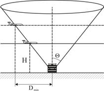 Угол раствора конуса зависит от вида навигационного средства. Обычно используют половину этого угла, которую обозначим θ (рис. 2.22). Как правило, θ лежит в пределах от 40º до 50º для разных средств. Для приближенных расчетов часто используют среднее значение 45 º.