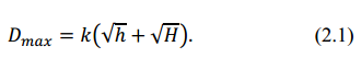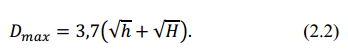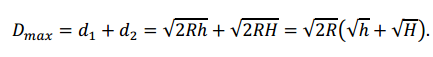 Численное значение коэффициента k можно получить, если подставить в формулу среднее значение радиуса Земли (6372,9 км) и учесть, что высоты h и H обычно измеряются в метрах, а D max желательно получать в километрах.