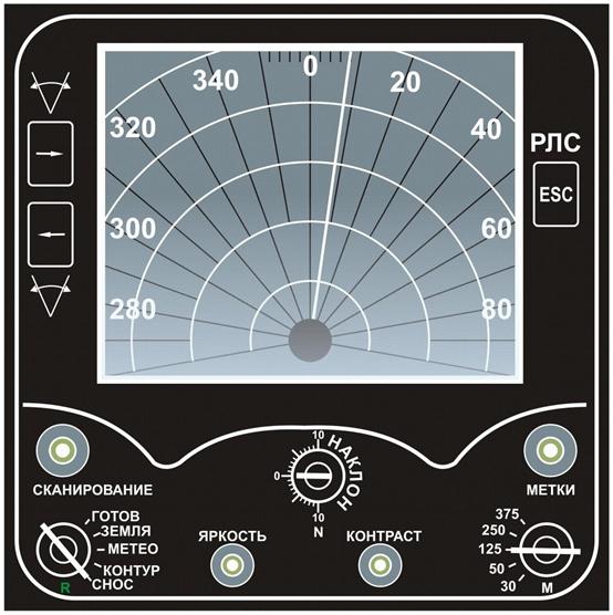 Клавишами управления антенной, которые расположены слева от экрана, линию развертки (направление антенны) можно направить в любую сторону. Задача пилота – подобрать такое положение антенны, чтобы мерцания на линии развертки стали как можно медленнее, желательно, чтобы почти остановились. Это положение антенны будет соответствовать направлению вектора путевой скорости. Ведь тогда ориентиры будут не пересекать линию, создавая мерцания, а довольно медленно двигаться вдоль нее.