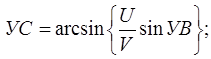 3. Находят угол сноса и путевую скорость с использованием теоремы синусов (3.8). Из нее следует: