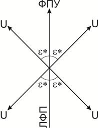 4. Поскольку W<V, то ветер дует назад, а так как УС>0, то ветер дует вправо. Следовательно, вектор ветра лежит во II четверти, если отсчитывать четверти от направления ЛФП по часовой стрелке (см.рис. 3.14). В этом случае острый угол ветра ε* отсчитывается от направления, противоположного направлению W, то есть: