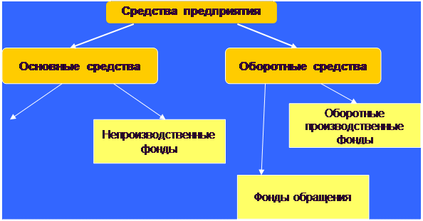 Основные средства – это денежная оценка основных фондов как материальных ценностей, имеющих длительный период функционирования. В соответствии с действующей классификацией, в состав основных фондов входят объекты производственного и непроизводственного назначения. К производственным основным фондам относятся основные фонды промышленного, строительного, сельскохозяйственного назначения, автомобильного транспорта, связи, торговли и прочих видов деятельности материального производства. Непроизводственные основные фонды предназначены для обслуживания нужд жилищно-коммунального хозяйства, здравоохранения, просвещения, культуры.