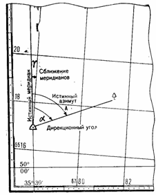 Сближение меридианов — угол f (рис. 3) между северным направлением истинного меридиана данной точки и вертикальной линией координатной сетки