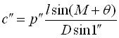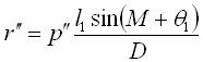 — угловой элемент редукции, отсчитываемый по ходу часовой стрелки от направления на центр знака до начального направления; D — расстояние до наблюдаемого пункта; М — измеренное направление на пункте, с которого вычисляют поправки за редукцию.
