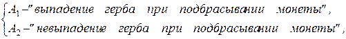 В — «появление цифры при первом бросании монеты», выясняем, что совместное осуществление этих событий невозможно.