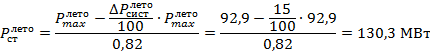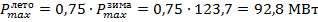 Летний максимум электрической нагрузки принимаем 75% от зимнего максимума: