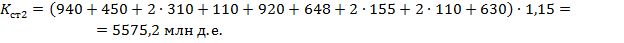 Учитывая поправку на используемое топливо равную 1,15 [с.20, 1] для бурого угля, рассчитаем капиталовложение для двух вариантов: