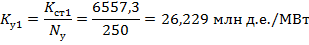 K общест – общестанционные затраты, для станции мощностью 201-300 МВт равны 630 млн. д.е. [приложение 4, 1].
