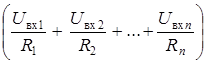 Поскольку сумма входных токов протекает по цепи ОС, то справедливо равенство