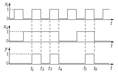 Временная диаграмма работы логической схемы 2И приведена на рис. 10.4. На рис. 10.4: х 1 и х 2 – входные сигналы, у – выходной сигнал.