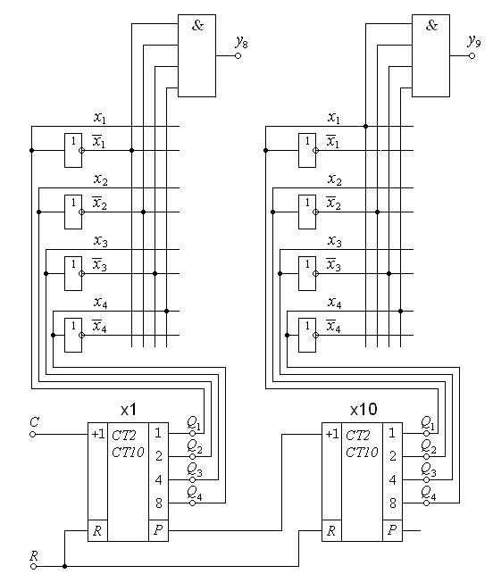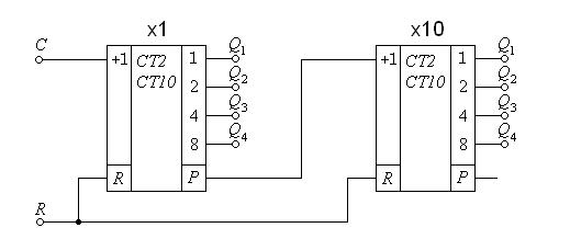 Рисунок 15.4 – Двухразрядный двоично-десятичный счетчик