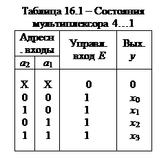 Для объяснения работы мультиплексора приведем таблицу его состояний (табл. 16.1).