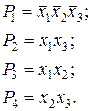 – чёрточка (–), если переменная хi невходит в j -ю конъюнкцию.