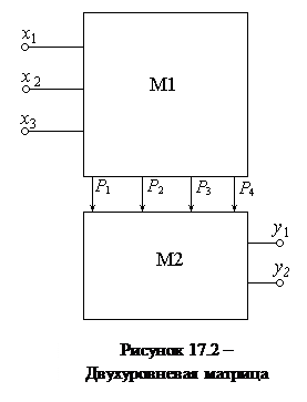 Если соединить обе матрицы М1 и М2, как показано на рис. 17.2, то полученная схема будет реализовать систему булевых функций