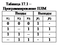 Построение схем с матричной структурой сводится к определению точек пересечения шин, где должны быть включены полупроводниковые приборы. В табл. 17.1 столбцы содержат переменные х 1,..., хL и функции у 1,..., уN .