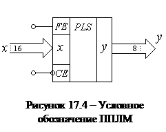 На рис. 17.4 дано условное обозначение микросхемы ППЛМ, где вход FE используется только при программировании и называется входом разрешения пережигания, а вход