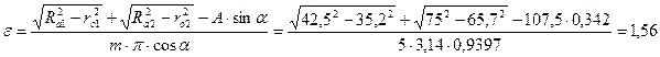 де е=N1N2 – довжина теоретичної лінії зачеплення, е=147 мм;