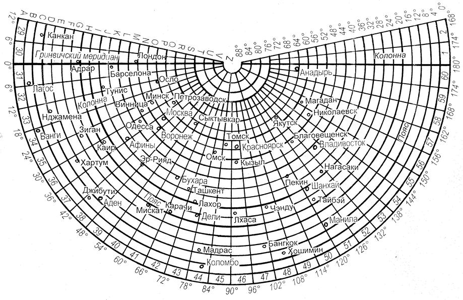Рисунок 1 - Номенклатура трапеций масштаба 1: 1 000 000. Северное полушарие, к востоку от Гринвича