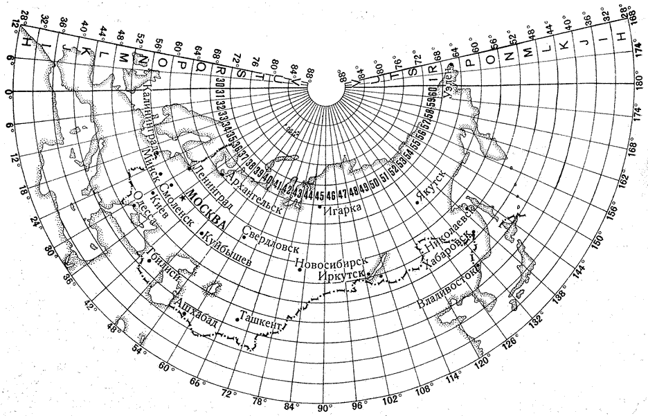 Рисунок 2 - Номенклатура листов карт масштаба 1: 1 000 000 на территорию СССР