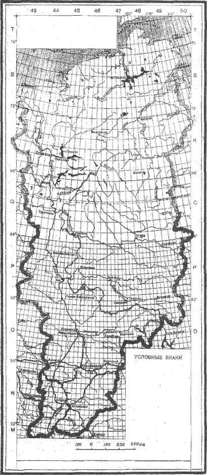 Рисунок 5 – Бланковая карта для масштабов 1: 1 000 000, 1: 200 000, 1: 100 000 на территорию Красноярского края и Хакасии