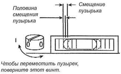 После этого, поворачивают алидаду на 180°; если пузырёк уровня останется на середине, то условие поверки считается соблюденным. Если же пузырёк уровня отойдет от середины больше чем на одно деление, значит, условие не соблюдено, и необходимо исправить обнаруженную не перпендикулярность осей, т.е. произвести юстировку. Для этого подсчитывают, на сколько делений уровня отклонился пузырек. Ошибку в размере половины делений устраняют исправительным винтом уровня (рисунок 15) с помощью специальной шпильки. При большом отклонении исправление выполняют постепенно. Поверку и юстировку повторяют несколько раз до полного устранения ошибки.