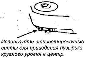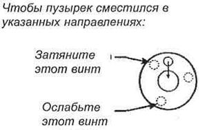 До начала данной поверки должна быть выполнена юстировка цилиндрического уровня. Если пузырёк круглого уровня находится в нуль-пункте после приведения в центр пузырька цилиндрического уровня, то дальнейшая юстировка не требуется. В противном случае необходима юстировка. Действуя юстировочной шпилькой, повернуть юстировочные винты (рисунок 16а), пока пузырёк круглого уровня не переместится в центр. Во избежание разрыва, нельзя перетягивать юстировочные винты. Необходимо ослабить один винт на ¼ оборота винта (рисунок 16б), а затем затянуть другой винт также на ¼ оборота. После этого поверку повторяют, повернув прибор на 180 °.