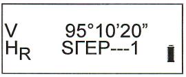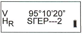 | Навести зрительную трубу на цель, расположенную близко к горизонту на расстоянии примерно 100 м. Нажать «V%». Данные для первой точки будут сохранены. На дисплее появится «STEP – 2» | V% | |