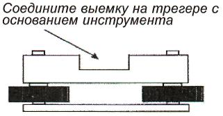 Поворотом закрепительного винта против часовой стрелки на 180˚, освобождается прибор (рисунок 21а). После этого, он вынимается из трегера. Чтобы установить новый прибор, необходимо соединить выступ инструмента с выемкой трегера (рисунок 21б). Затем повернуть закрепительный винт на 180˚ по часовой стрелке. Проверить надёжность закрепления.