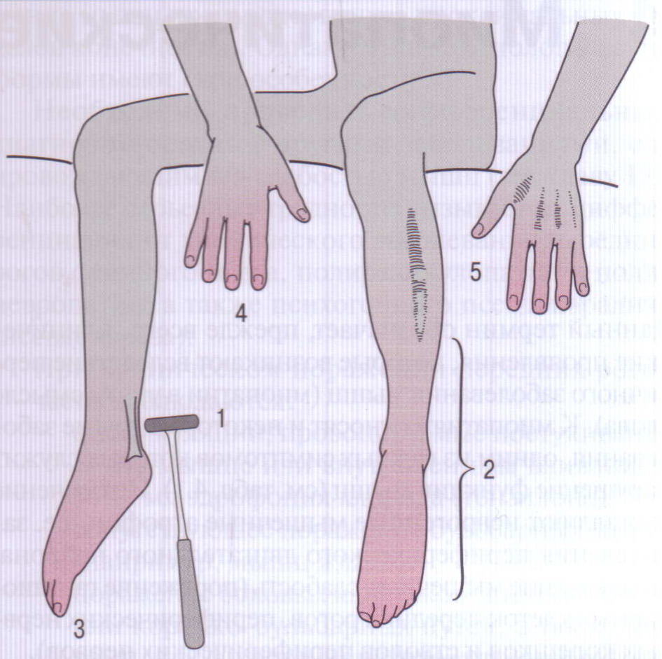 Полиневропатии –заболеваний периферической нервной системы, включающая в себя инфекционные: вирусные (полиневрит Гийена-Барре, при ангине, гриппе) и микробные (при скарлатине, сифилисе и др.), инфекционно-аллергические (при детских инфекциях – корь, краснуха и др.), токсические: при хронических интоксикациях (алкоголизм, свинец), при токсикоинфекциях (ботулизм, дифтерия), аллергические (сывороточные, вакцинальные), дисметаболические: при дефиците витаминов, при эндокринных заболеваниях (сахарный диабет), генетически обусловленные (например, болезнь Шарко-Мари-Тута). В основе этой группе заболеваний лежит одновременное поражение многих нервных корешков или периферических нервов. Клиническая картина характеризуется нарушением чувствительности и слабостью мышц, которые сопровождаются выпадением сухожильных рефлексов и атрофиями мышц. Различные формы заболеваниотличаются течением и характерными клиническими проявлениями.