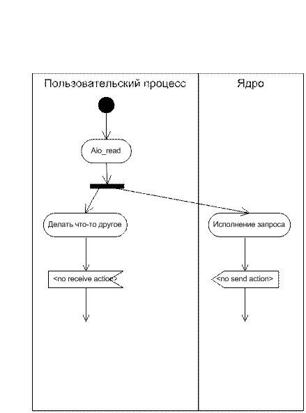 Также, для некоторых приложений, особенно для приложений реального времени важно знать точный момент начала поступления данных. Для таких приложений также может быть неприемлемо то, что select(3C) и poll(2) считают регулярные файлы всегда готовыми для чтения и записи. Действительно, файловая система читается с диска и хотя она работает гораздо быстрее, чем большинство сетевых соединений, но все-таки обращения к ней сопряжены с некоторыми задержками. Для приложений жесткого реального времени эти задержки могут быть неприемлемы – но без явного запроса на чтение файловая система данные не отдает!