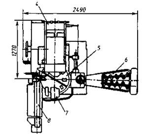 1 — станина; 2 — поверхность стола; 3 — дозатор; 4— механизм образования коробки; 5 — стол для формования; 6 — бункер; 7 — механизм заделки коробок; 8— отводящий транспортер.
