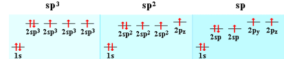 Подібно вуглецю, азот у різних сполуках може знаходитися в станах sp3, sp2 або sp-гібридизації.
