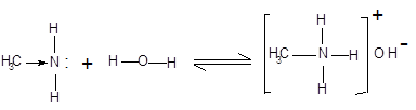 Водні розчини аліфатичних амінів виявляють лужну реакцію, тому що при їхній взаємодії з водою утворяться гідроксиди алкіламонію, аналогічні гідроксиду амонію: