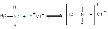 Зв'язок протона з аміном, як і з аміаком, утвориться за донорно-акцепторним механізмом за рахунок неподіленої електронної пари атома азоту. Аліфатичні аміни – більш сильні основи, ніж аміак, тому що алкільні радикали збільшують електронну густину на атомі азоту за рахунок + I-ефекту. З цієї причини електронна пара атома азоту утримується менш міцно і легше взаємодіє з протоном.